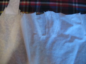 Let me parenthetically explain that I am a self-taught seamstress; I love the construction aspect of the whole thing, making a garment come together, the architecture. I have no patience for the finishing bits, and it’s only because I can hem, or whipstitch, or do whatever it is while watching TV, that things I sew don’t look like a bad pile up on I-280 at rush hour. So I don’t often take on anything much more complex than a costume for my kids.